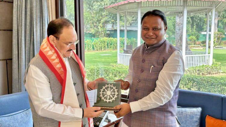 ନୂଆଦିଲ୍ଲୀ (ସଂକେତ ଟିଭି): ମୁଖ୍ୟମନ୍ତ୍ରୀ ମୋହନ ଚରଣ ମାଝୀ ଶନିବାର ନୂଆଦିଲ୍ଲୀରେ ଭାରତୀୟ ଜନତା ପାର୍ଟିର ରାଷ୍ଟ୍ରୀୟ ଅଧ୍ୟକ୍ଷ ଏବଂ କେନ୍ଦ୍ର ସ୍ୱାସ୍ଥ୍ୟ ଓ ପରିବାର କଲ୍ୟାଣ